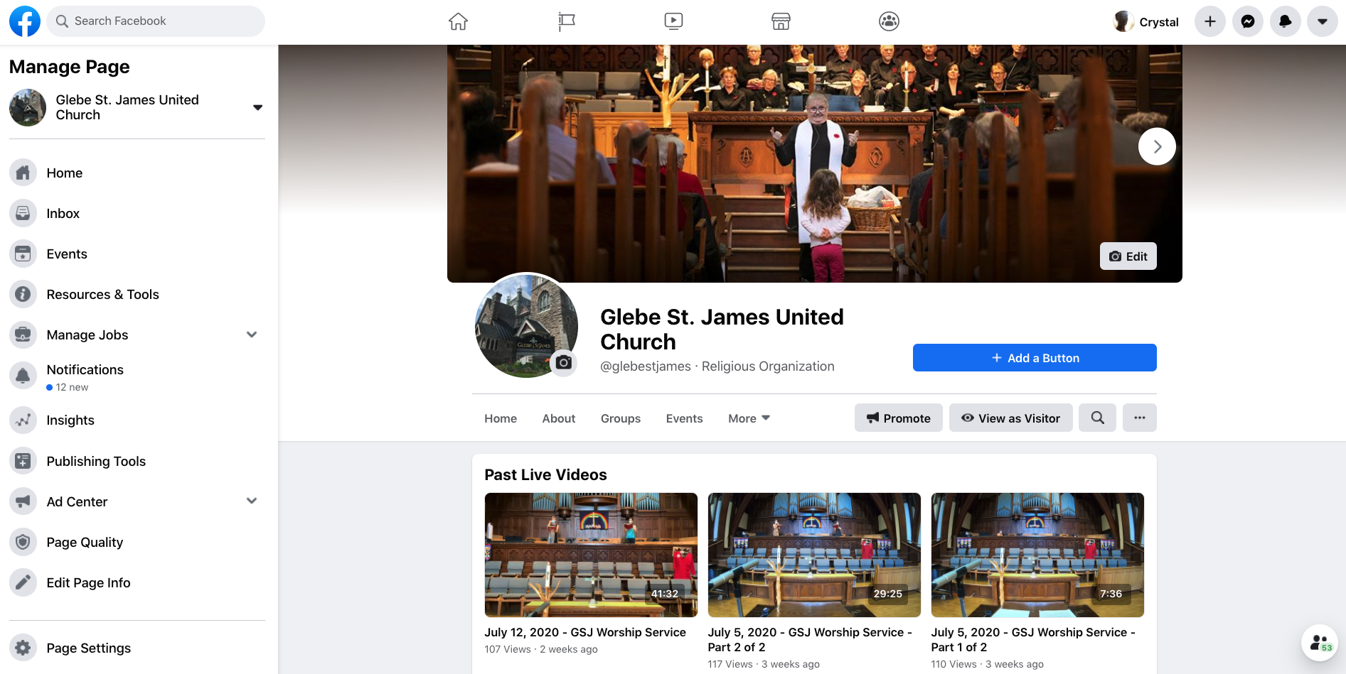 Advantages: Links to the generic livestream, so will point to whatever is the most recent video. This link could be used time and again, regardless of week. Likewise, could pick-up if there was ever a broadcasting blip that had us restart with a new streaming session. Note that the button can be visually manipulated - e.g. the text can be bigger!