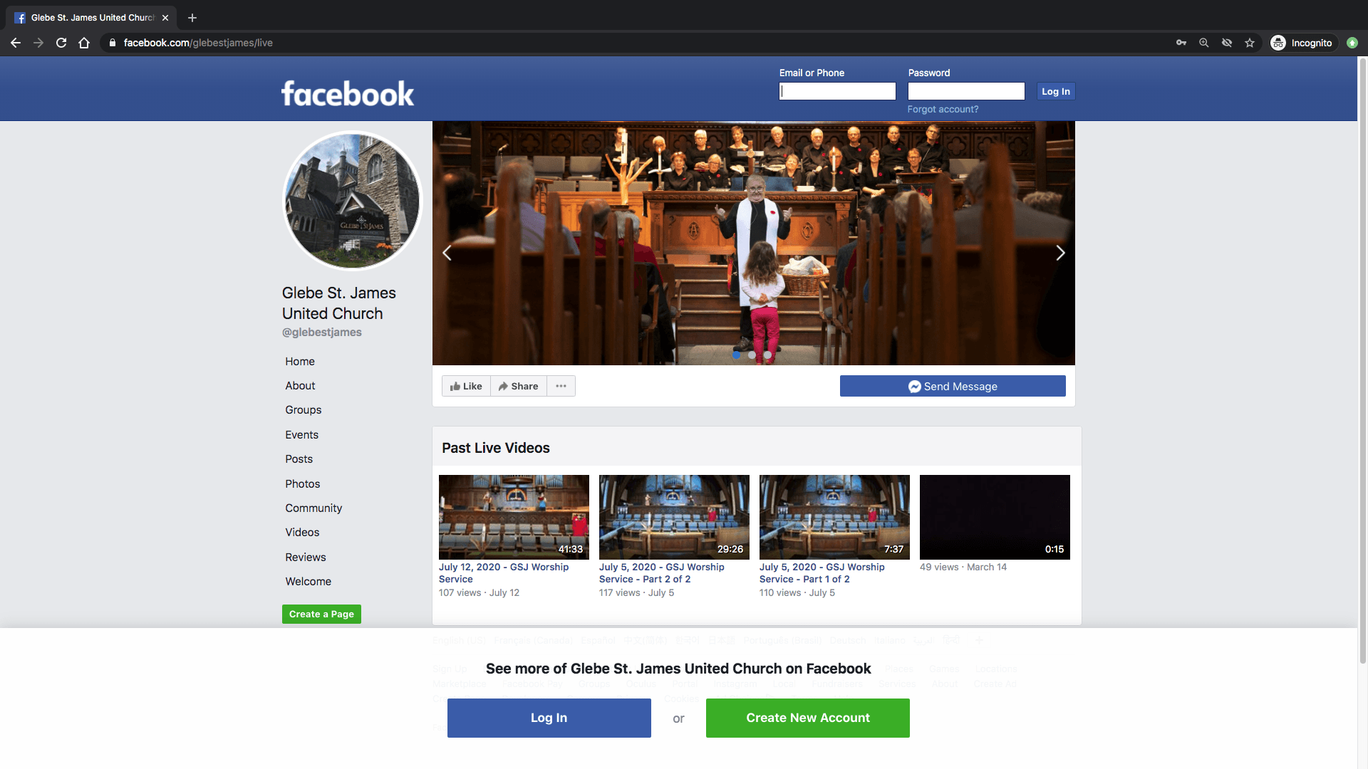 Advantages: Links to the generic livestream, so will point to whatever is the most recent video. This link could be used time and again, regardless of week. Likewise, could pick-up if there was ever a broadcasting blip that had us restart with a new streaming session.